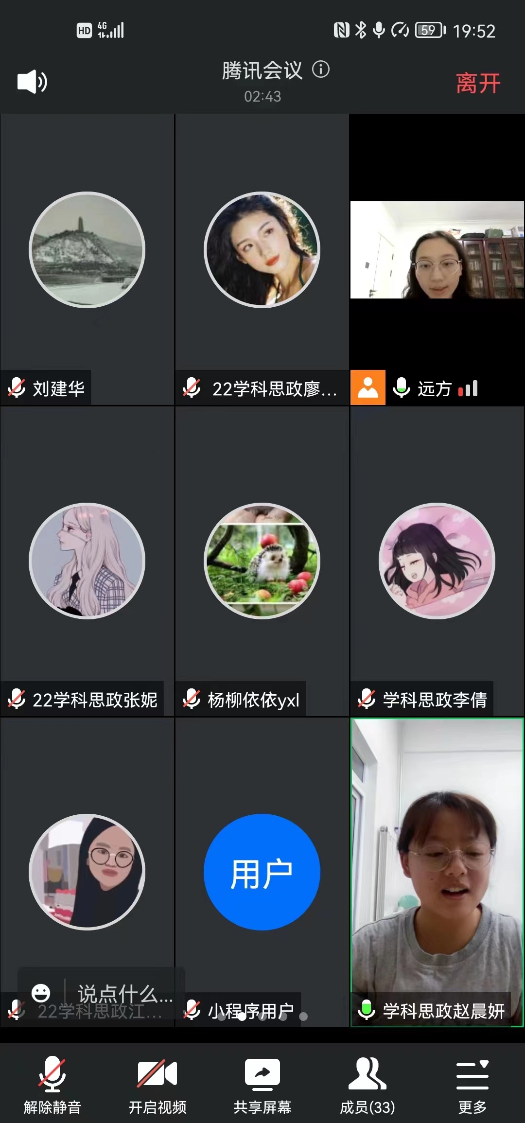刘建华老师对校外导师逐一进行了介绍,并对校外导师的到来表示热烈的欢迎。刘建华老师对同学们提出了期望,希望同学们在校外导师的指导下提高实践能力、提升自身教学技能。参会的21位学科思政同学依次介绍了自己的学习经历、专业背景、学习计划等,也使得校外导师对学科思政专业的各位同学有了深入的了解。此次活动使同学们与导师建立起了初步的了解,为日后教学实践的有序开展奠定了良好的基础。通过此次会议,学科思政的同学们对于本专业的培养要求及日后的实践环节有了更为全面的认识,对未来的学习生涯有了更加明确的规划。