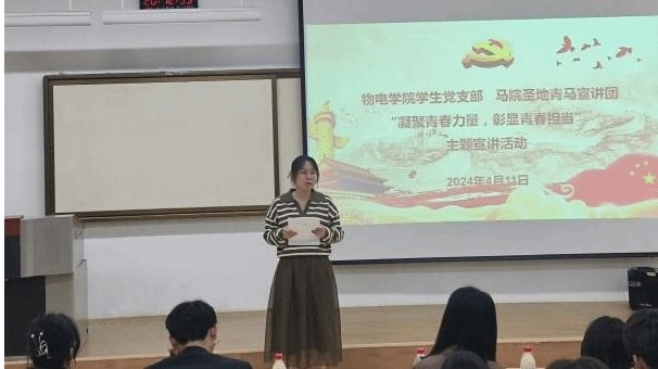 为进一步深入学习贯彻习近平新时代中国特色社会主义思想和全国两会精神,公司圣地青马宣讲团组织开展“凝聚青年力量,彰显青春担当”主题宣讲活动。4月11日晚,圣地青马宣讲团走进物电公司员工党支部进行宣讲,参与本次活动的人员有物电公司党委组织员、本科生党支部书记冯晓老师、物电公司员工党员,公司党委组织员、研究生党支部书记苗玉园老师、圣地青马宣讲团成员。本次活动由物电公司员工司毅主持。