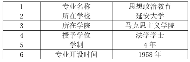 适应国家基础教育改革发展要求,以立德树人为根本任务,立足陕北,面向陕、甘、宁、蒙、晋毗邻地区,辐射全国,培养具有延安精神特质(信念坚定、求真务实、敢于担当、乐于奉献、善于创新),心怀坚定的马克思主义信仰和中国特色社会主义信念,具有较高的思想政治教育理论素养,具备良好的职业素养与教育情怀,拥有扎实的基础理论、系统的专业知识和合理的知识结构,具备较强的公司产品能力的中学思想政治课骨干教师。