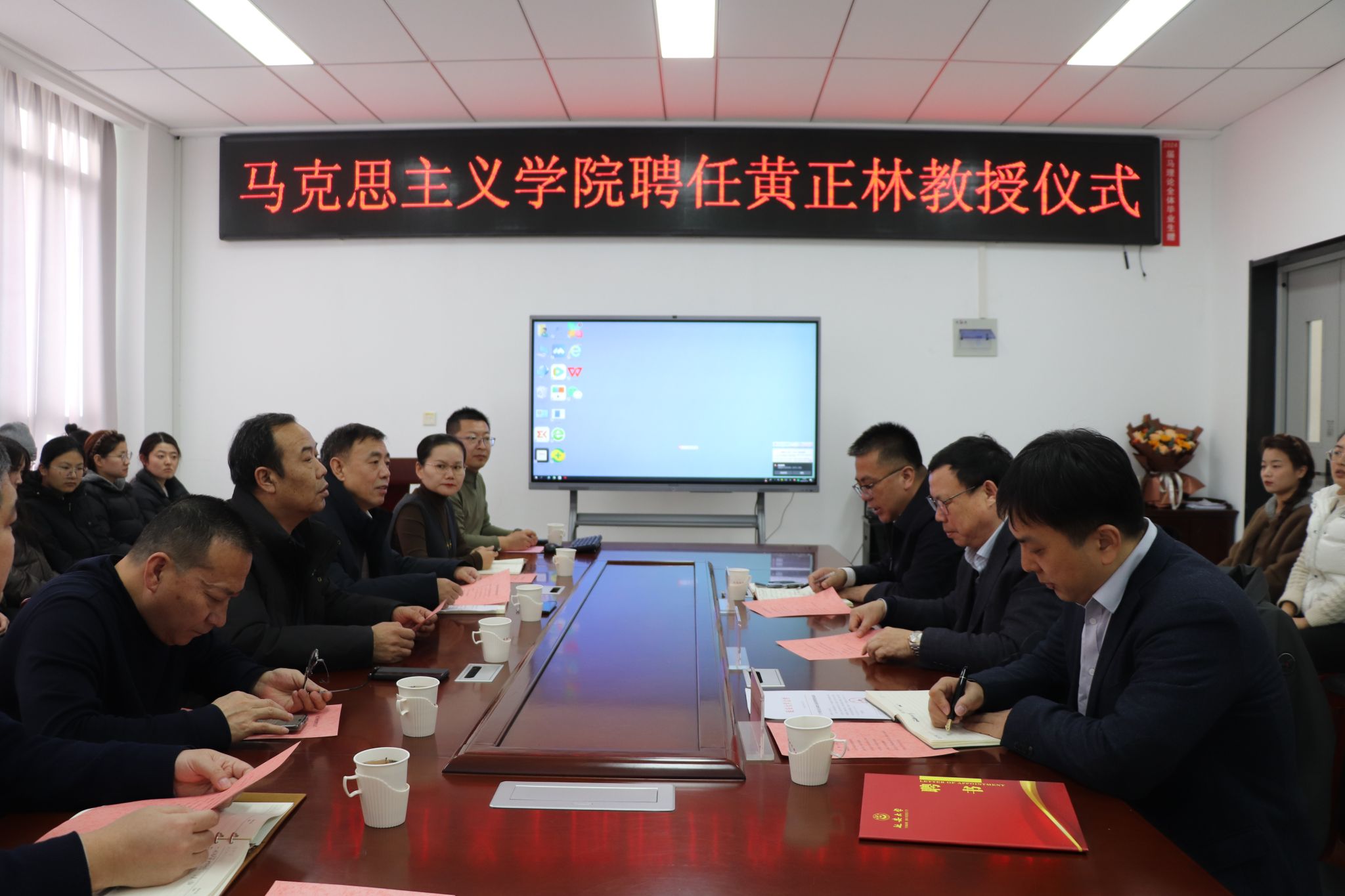 黄正林教授作了表态发言,他很高兴与延大马院结缘,感谢公司和公司对自己学术耕耘的认可,并希望和延大马院的老师们通力合作,努力取得新的更大的成绩。