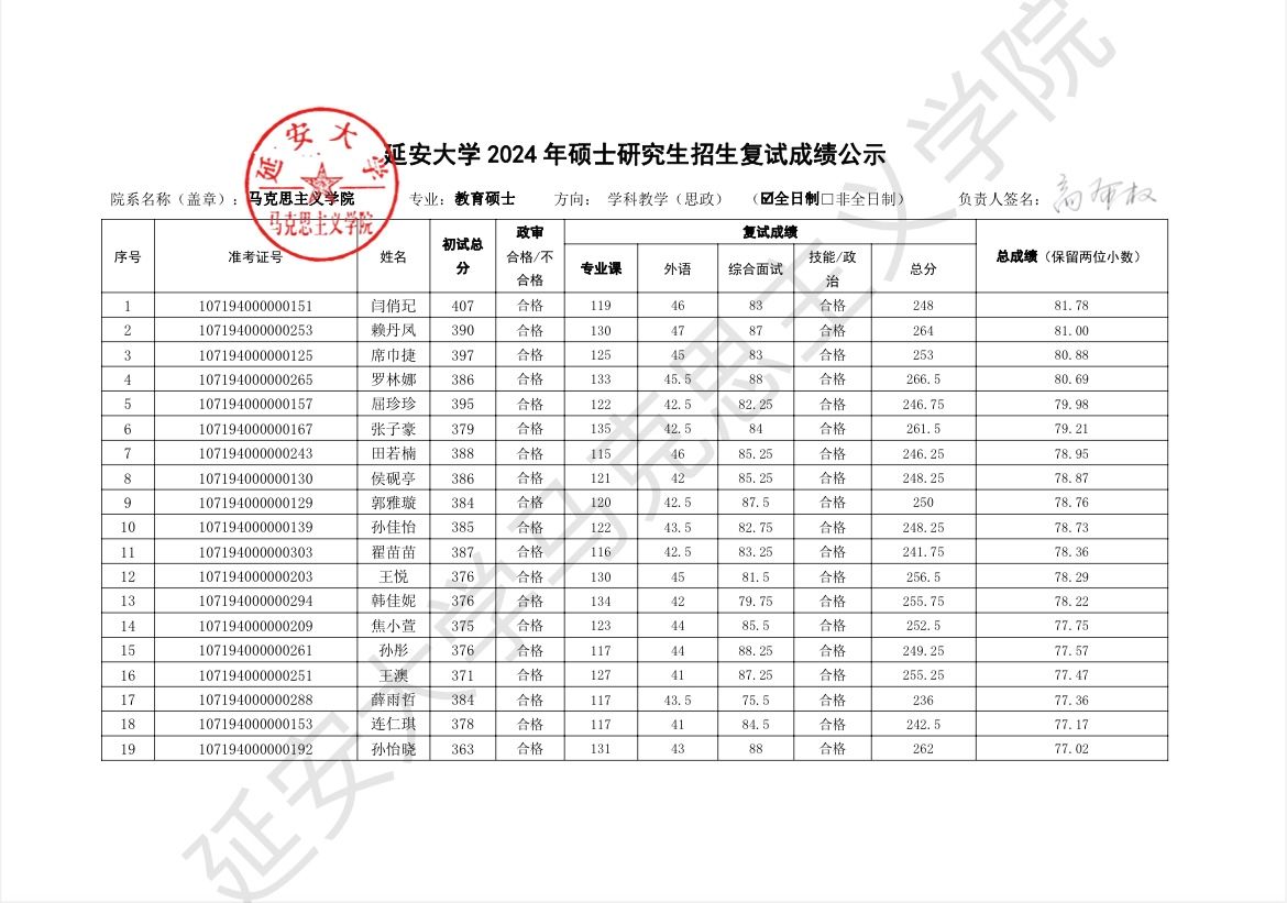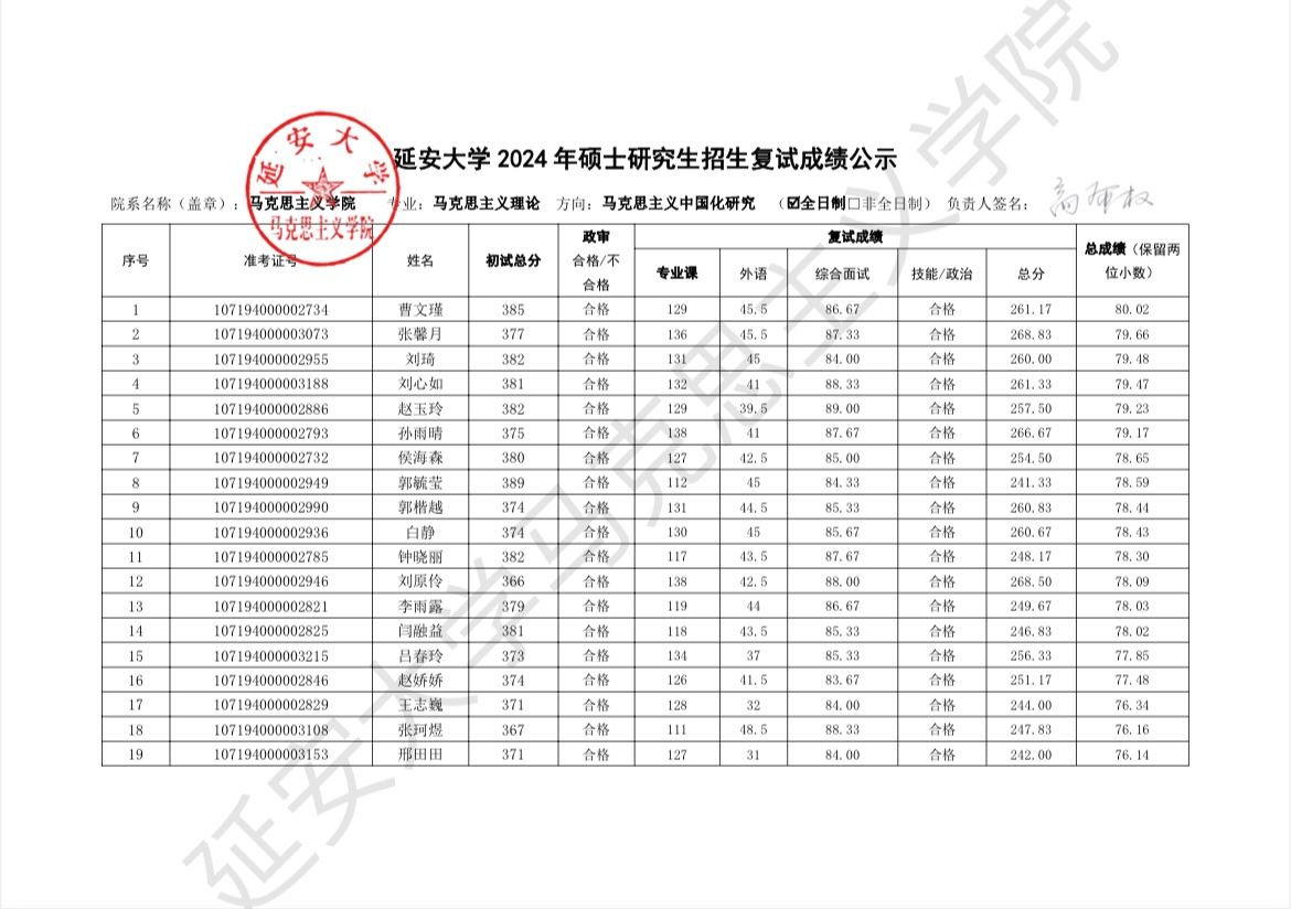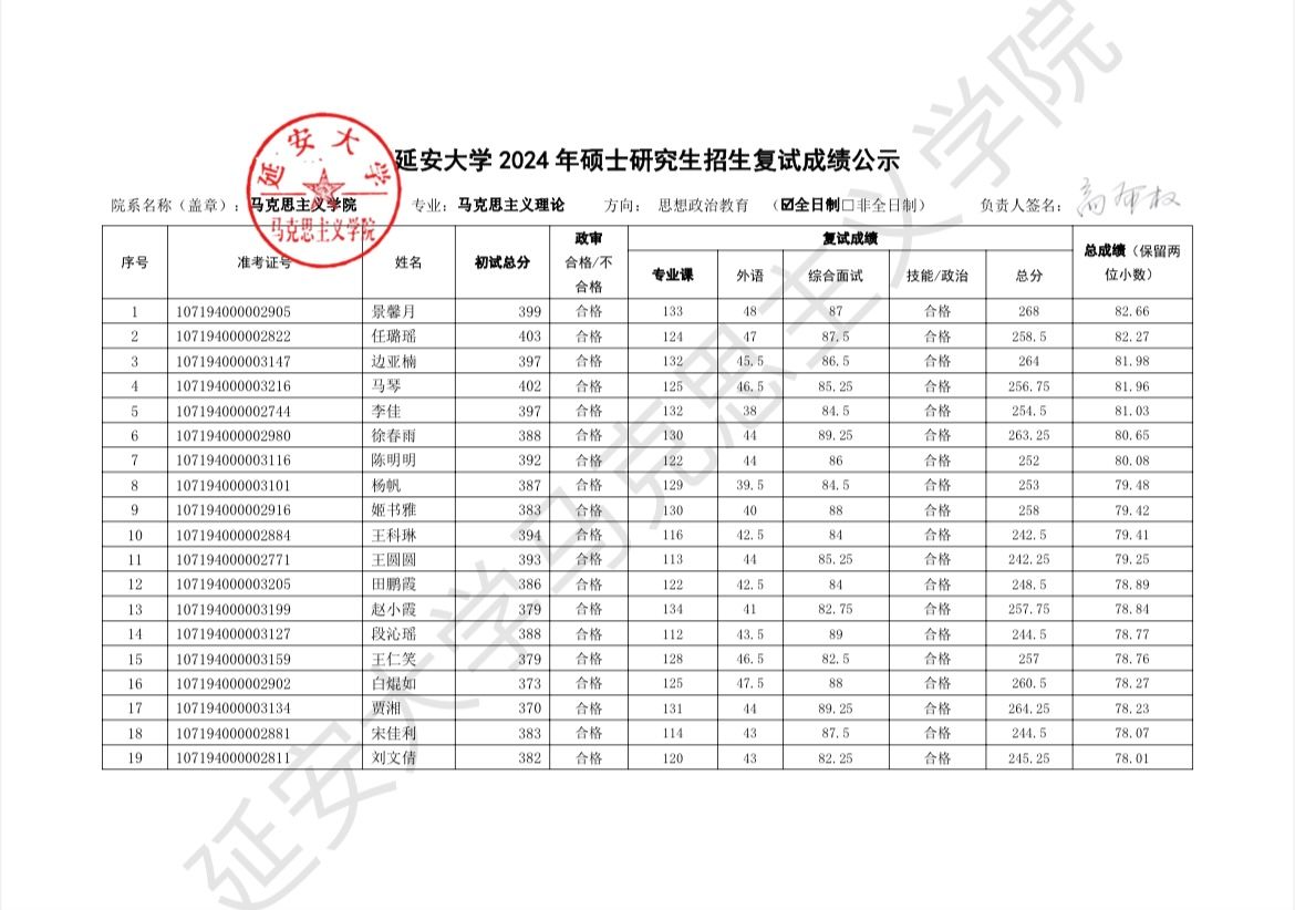 依据公司2024年硕士研究生复试工作实施方案,于2024年3月29日至3月31日的一志愿考生复试工作已圆满结束,现将具体复试成绩予以公示,公示时间为十个工作日,于公示期间如有疑议,请联系: