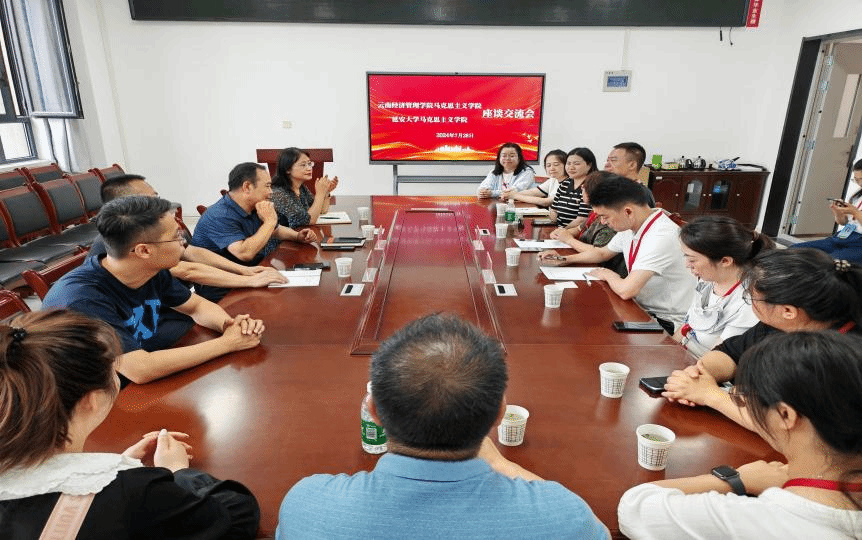 张彬书记代表公司对兄弟院校师生代表的到来表示热烈的欢迎,并就公司基本情况作了详细介绍。云南经济管理公司PA视讯党总支书记徐丽珍就马院的发展历程、团队、教学、科研等方面进行具体介绍。随后,双方从教学、科研、党建引领方面进行了深入的交流。