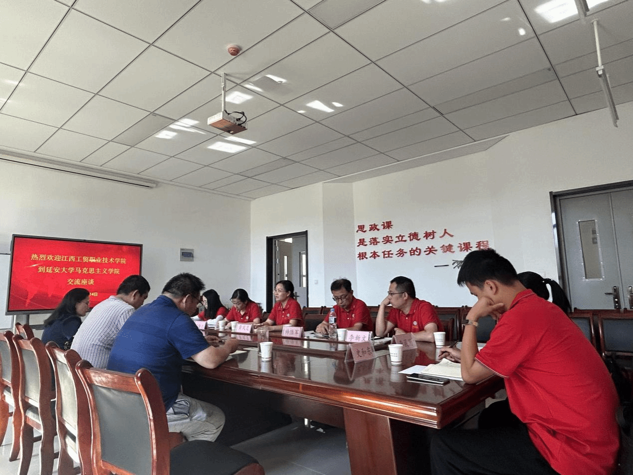 8月14日下午,江西工贸职业技术公司思政课教学部主任黄凤芝带队来公司进行交流座谈。刘建华、臧爱绒与杨利文等三位老师代表马院参加了本次座谈。