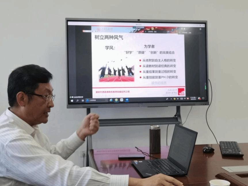 王岩教授围绕“新时代教师发展的应然之境”展开本次培训。他强调教师在师德师风建设以及职业素养涵养方面应做好以下工作:一是确定自己的职业发展目标;二是要树立好为师、为学两种风气;三是树立危机意识、进取意识与宽容意识等三种意识;四是要学会利用学缘资源、学术圈资源、高校资源和社会资源等四种资源;五是要培养前沿性的把握、习惯的养成、课题的培育、团队的意识、诚信的坚守等五种科研品性。此外还要注意处理好六种教学关系。