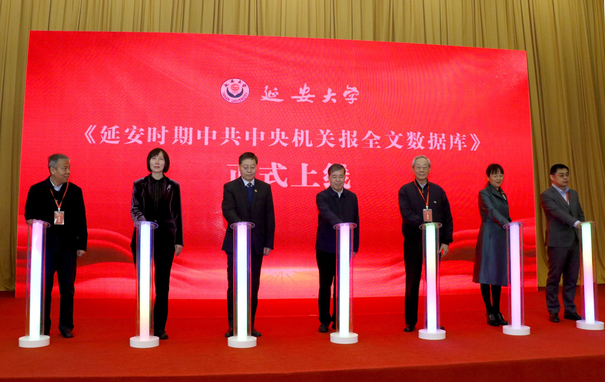 陕西省社会科学联合会副主席高红霞和中共陕西省委教育工委宣传部部长梅争利先后讲了话,并与中共中央党史研究室原副主任章百家、中国延安干部公司副经理韩东晖,以及任宗哲、张金锁、杨宏兰共同启动数据库上线。