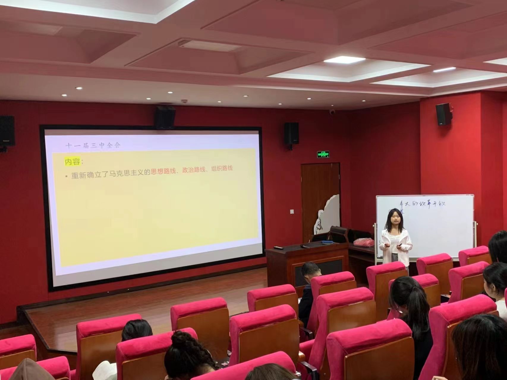 喻梦珍同学试讲的内容为《伟大的改革开放》。本节课从与员工们的热情互动中作为导入引发员工们的学习兴趣,讲课中主要从改革开放的背景、过程以及意义三方面向同学们进行了详细的讲解,其中在不同的阶段设置了不同难度的问题引发思考,最后以两道练习题作为课程的结束。在试讲结束后,杨文军老师首先对教学准备和教学风格方面做出了肯定,其次指出了内容细节方面的问题,就视频的选取、相关名词的解释、以及数据应做出及时的更新和知识需要更多的延申等方面给出了建议。