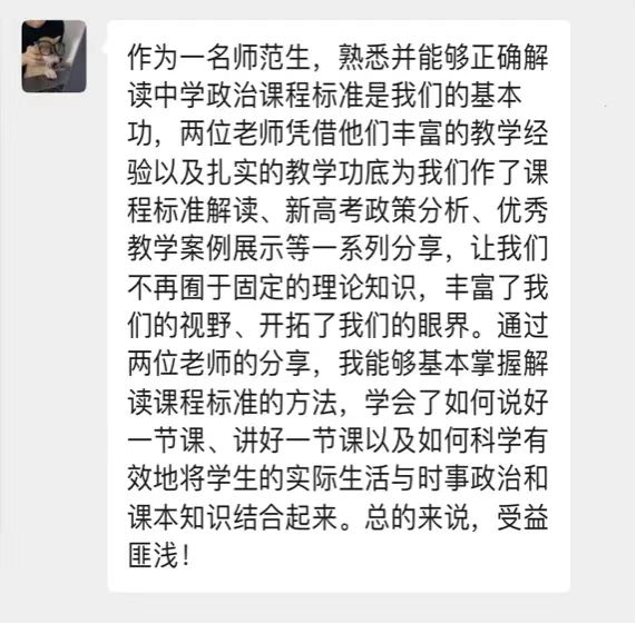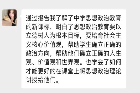 为帮助公司本科师范生了解、熟悉最新的中学政治(包括初中《道德与法治》和高中《思想政治》)课程标准),增强师范生们对中学政治课程标准的解读能力,为其今后实习和正式步入教师工作岗位打下坚实的基础,公司特聘请延安市第一中学单婷老师和宝塔区第二中学白应健老师为思想政治教育20级师范生作专题报告。