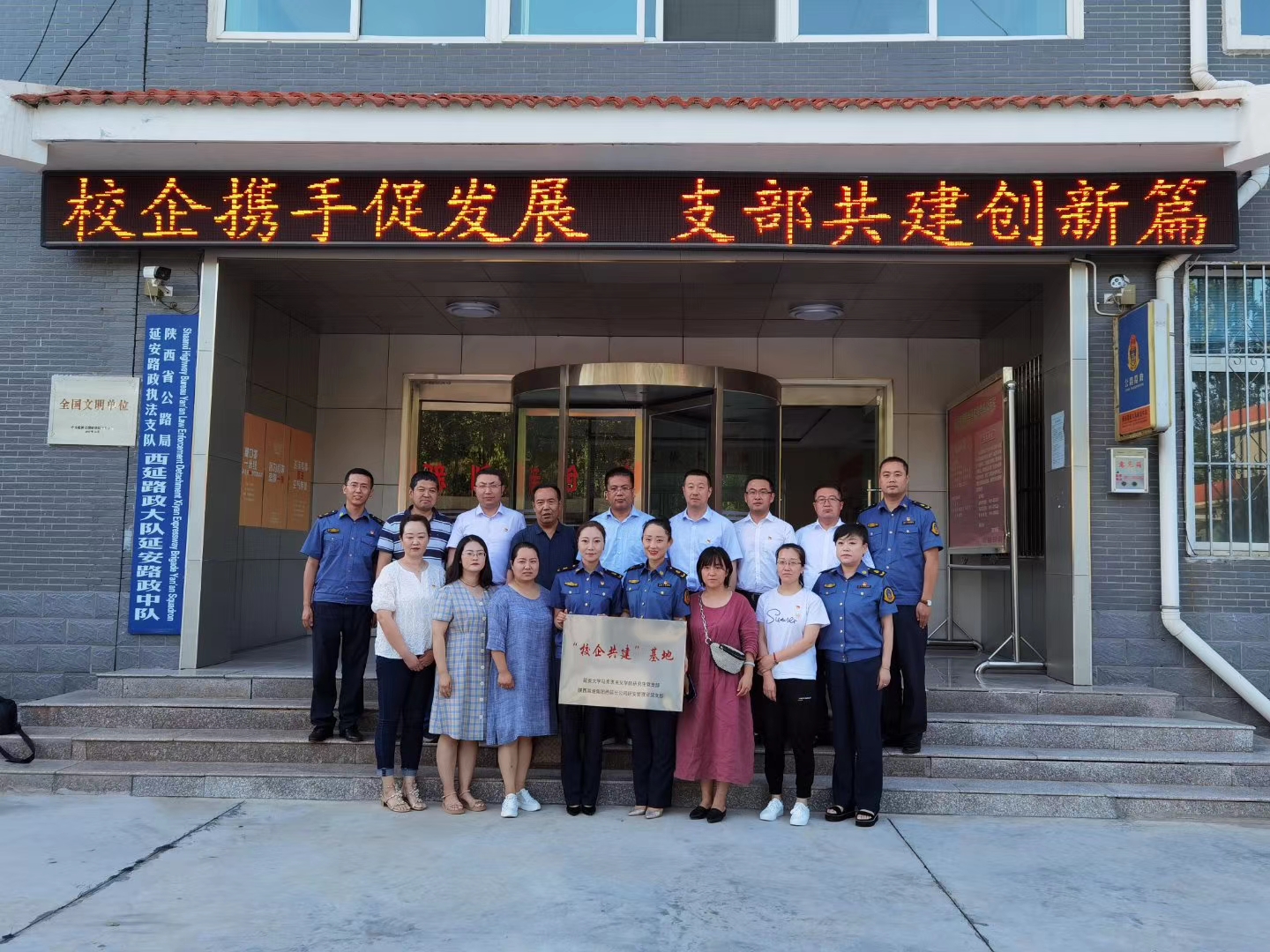 6月29日下午,PA视讯研究生党支部与陕西高速集团西延分公司延安管理所党支部在延安管理所举行了“校企携手促发展、支部共建创新篇”校企支部共建揭牌仪式。参加仪式的有PA视讯执行经理谭虎娃、党委副书记张彬、学科与研究生秘书刘建华、研究生党支部书记闫莉莉、教学秘书亢鸽、办公室副主任姬文文和陕西高速集团西延分公司延安管理所党支部委员王德伟、贺磊、彭刚等。仪式由延安管理所党支部委员贺磊主持。