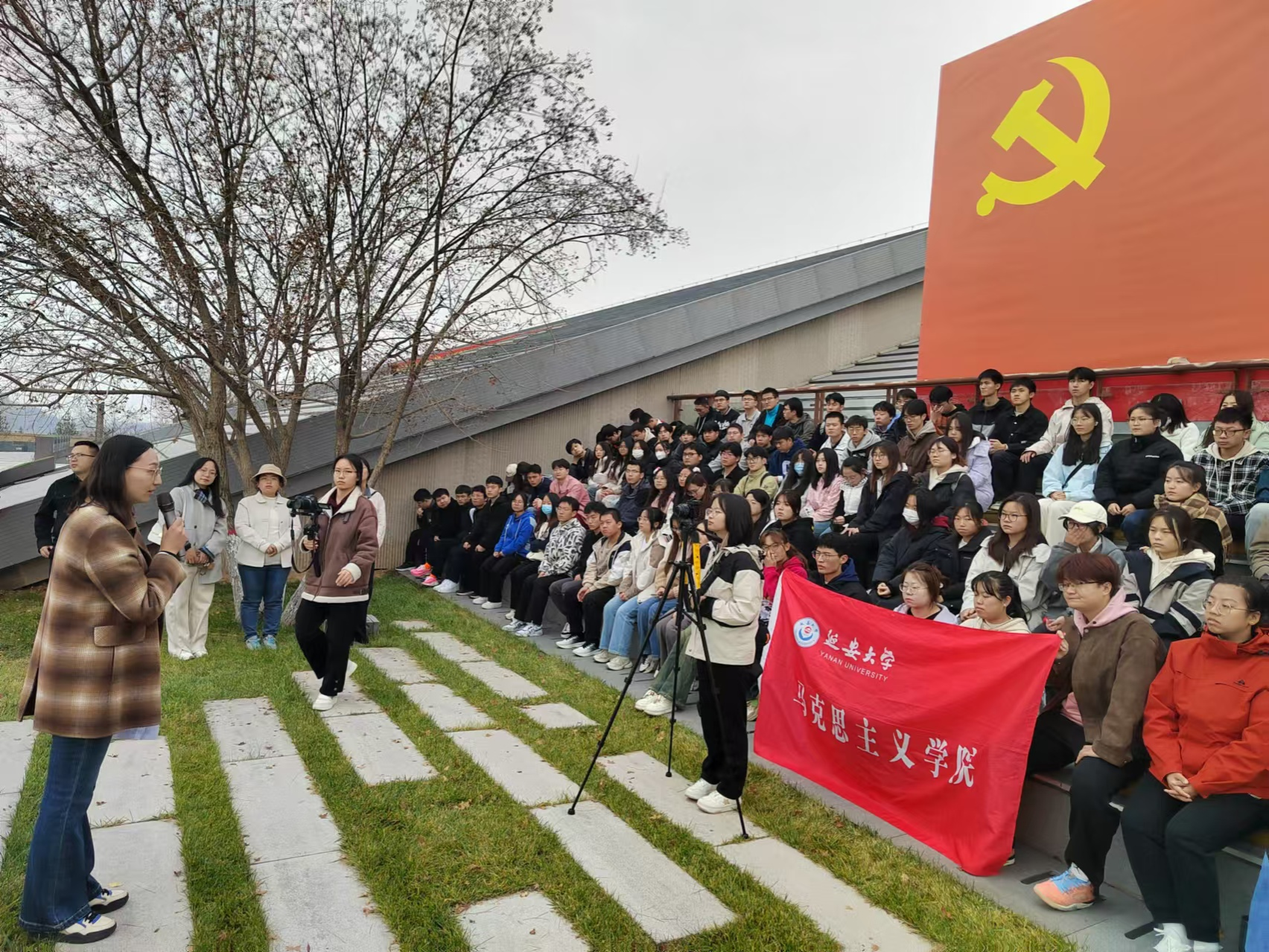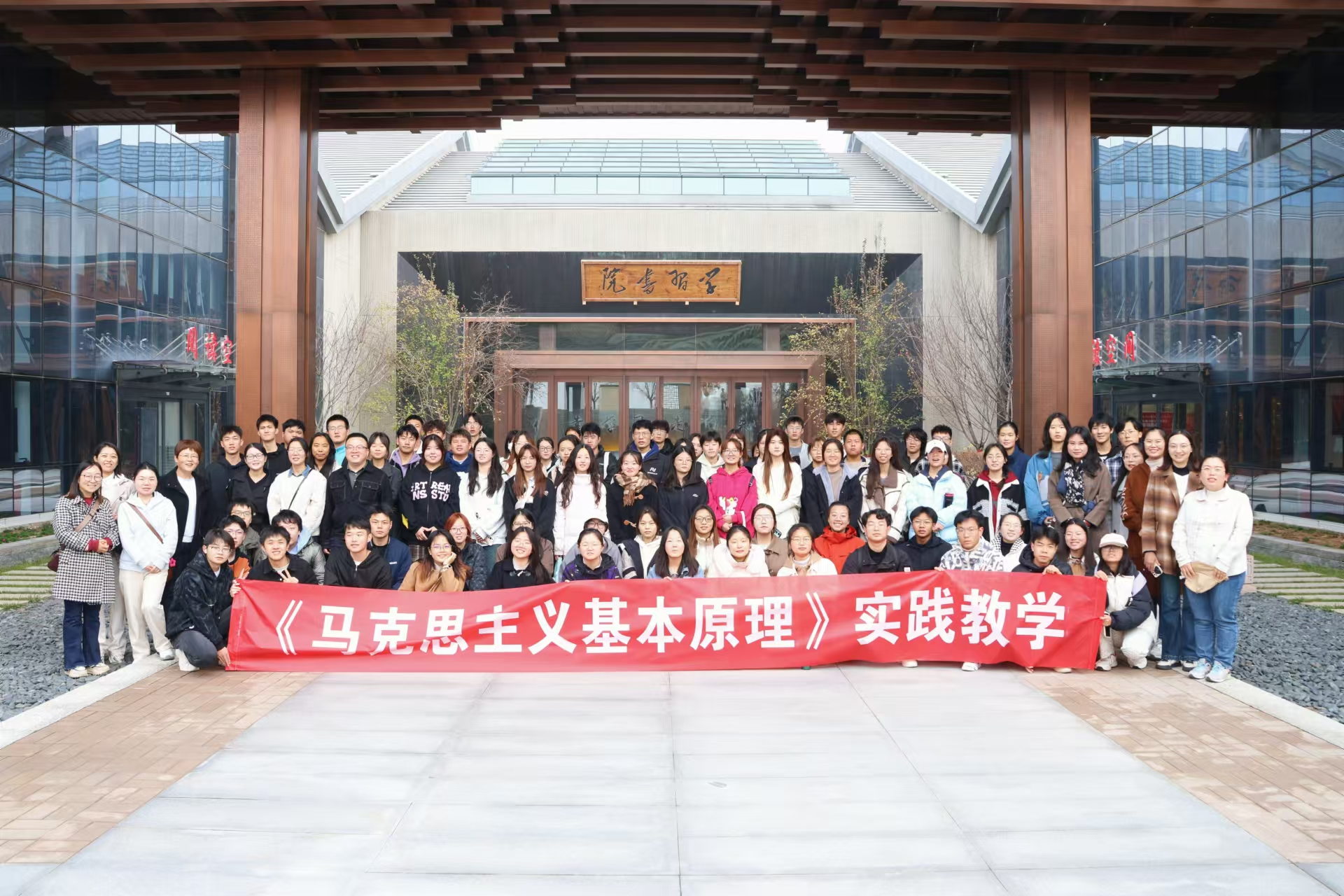 为深入贯彻落实习近平总书记关于思政课建设的重要讲话精神,切实以“大思政课”建设为引领,提升思政课实践教学质量,2024年11月9日,马克思主义基本原理教研室全体教师组织2023级本科生员工代表步行前往延安学习书院开展实践教学活动。