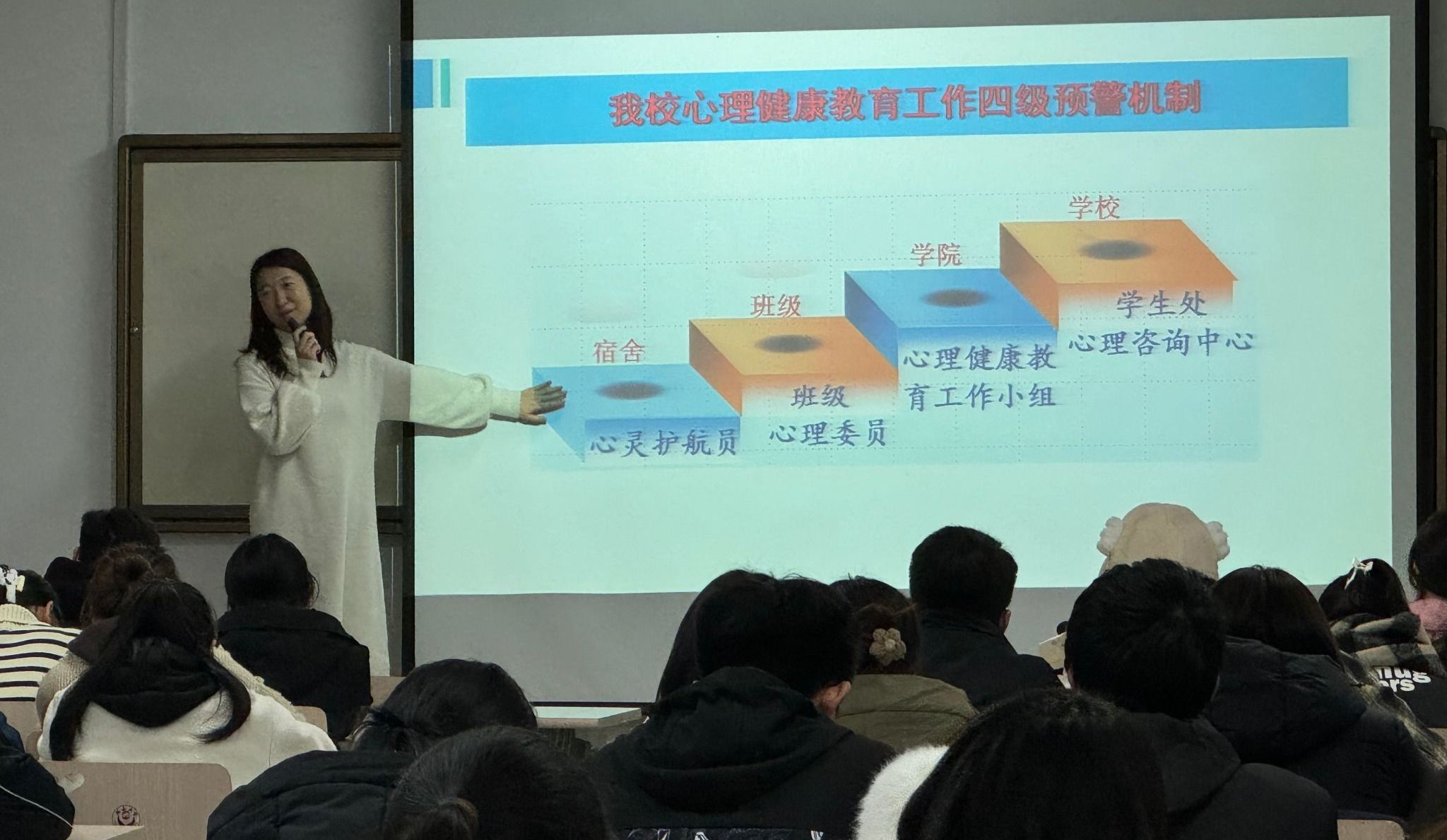 会前,郭秦云老师着重强调了此次培训的重要意义。她表示,心理委员和宿舍长作为连接员工与老师的关键桥梁,肩负着重要使命。希望大家能在培训中全心投入,认真学习,切实提升自身工作能力,进而在心理健康教育中充分施展积极影响力。