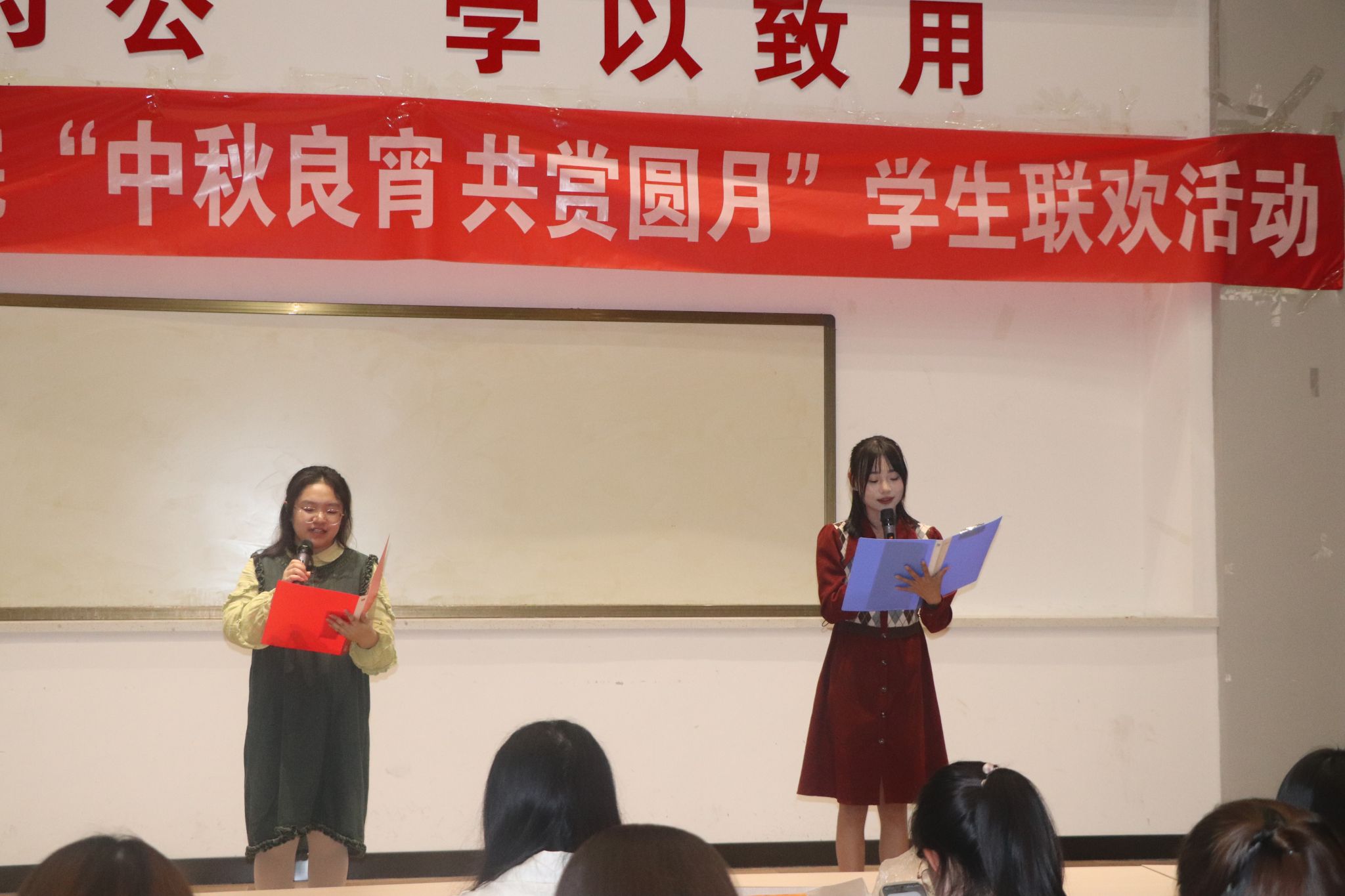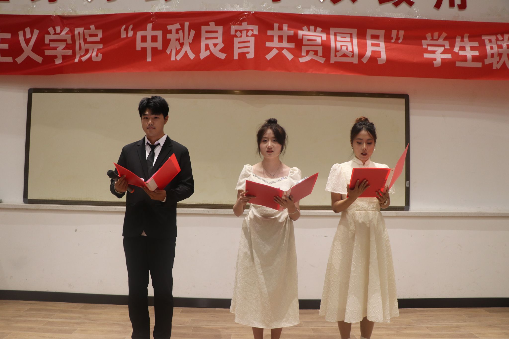 “平分秋色一轮满,长伴云衢千里明。”在中秋节里,我们不仅享受着亲情的凝聚,更能深刻感受到中华民族大家庭的和谐和团结。在中华民族的精神谱系中,家与国,己与人,是密不可分的命运共同体,晚会在激情澎湃的诗朗诵《盛开的民族团结之花》中拉开序幕。紧接着,歌曲《简单爱》的唯美呈现让我们感受到那份纯真、质朴的情感。张宇婷同学如诗如画的舞蹈将“花好月圆人团圆”的美好希冀演绎得淋漓尽致。歌曲《多远都要在一起》、朗诵《红烛》等节目将活动推向高潮,在场同学喝彩声不断。最后,文艺汇演在张艺巍等同学们带来的《明天,你好》歌曲声中落下帷幕。