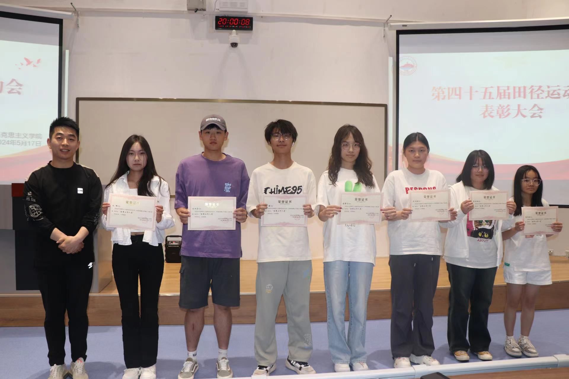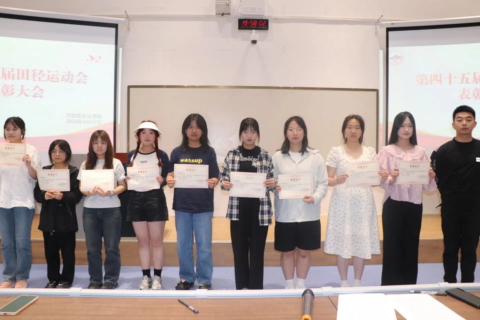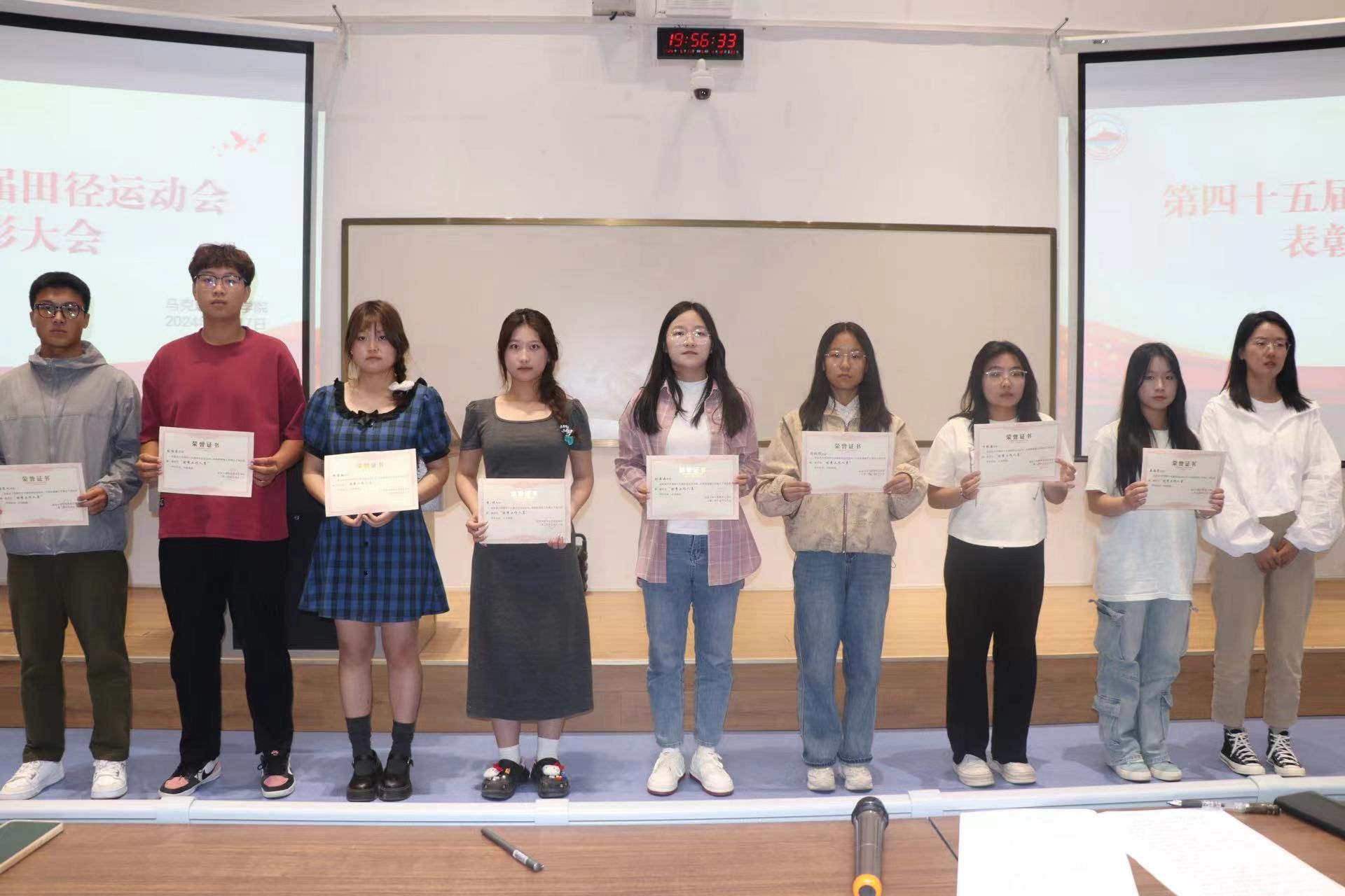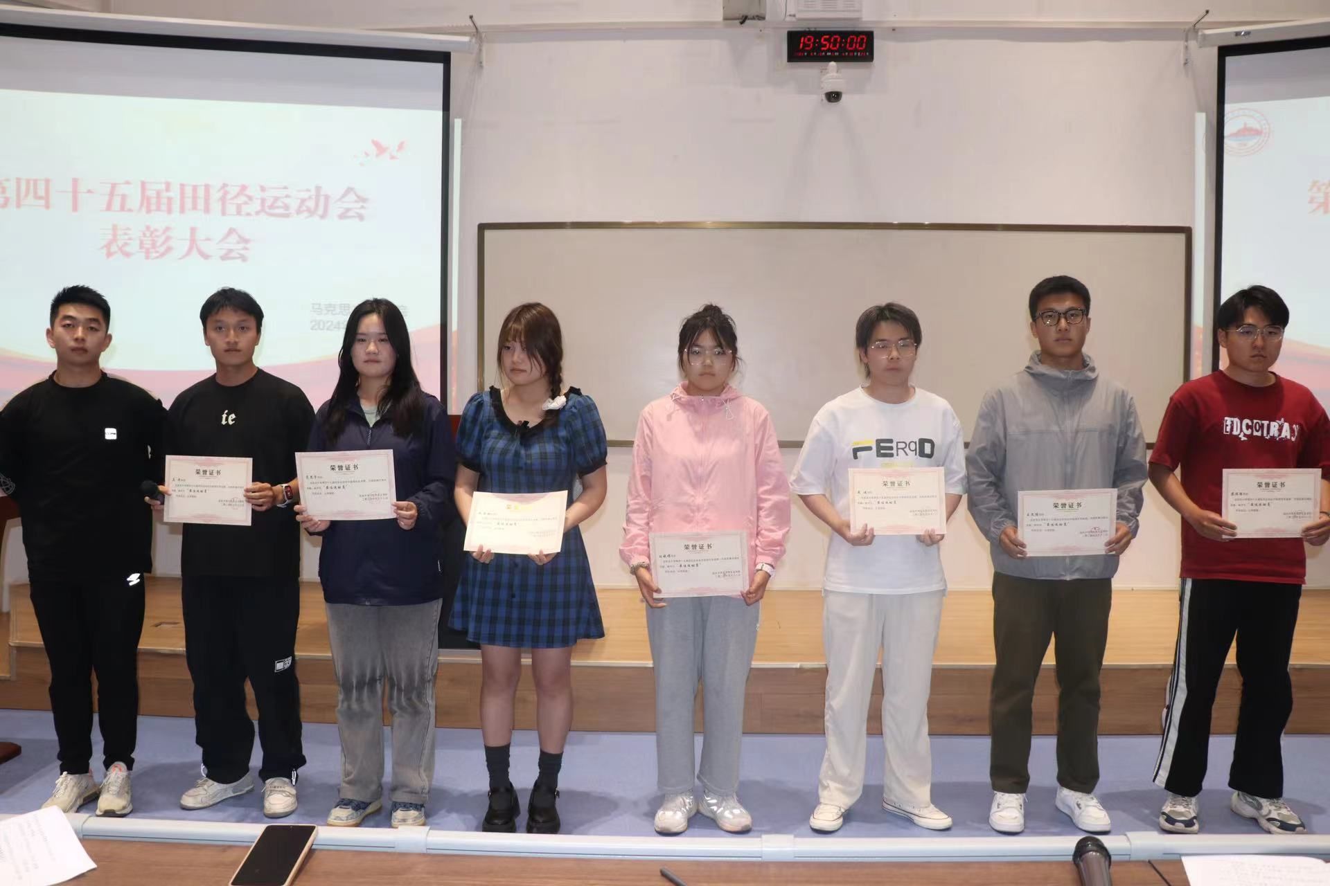为表彰公司在校运动会中取得优异成绩和作出突出贡献的个人和集体,激励全院员工拼搏进取,弘扬体育精神,营造公司体育文化氛围,促进员工的全面发展,2024年5月17日下午7时,公司在教学楼2105举办了第四十五届田径运动会表彰大会。参加本次大会的有团委书记郭忠義老师、辅导员苗玉园老师、贺宁宁老师,公司全体参赛运动员、员工会成员、拉拉队成员及圣地青马志愿服务队成员。表彰大会由马洋同学主持。大会共有七项议程。
