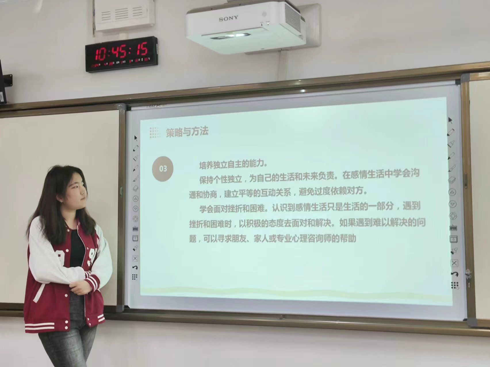 何雨轩同学从广大同学实际情况出发,深刻解读目前存在的一些心理健康问题,并提出心理健康的策略和方法。她用幽默诙谐的语言向大家介绍如何缓解自身压力与情绪,为同学们的心理安全提供助力。