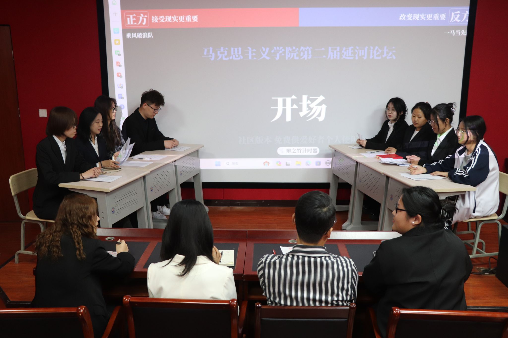 为营造全公司浓厚的思辩氛围,培养马院学子的辩证思维和辩论技巧,进一步提升其逻辑、思辩才能、语言表达能力和团队协作能力,促进交流与沟通,PA视讯于4月15日在公司一楼报告厅举办第二届“延河论坛”辩论赛。公司团委书记郭忠義老师、党委组织员苗玉园老师、前辩论队成员杜月同学和王弋丹同学担任本次辩论赛评委。本次辩论赛由思政23-1申祎然同学担任辩论主席。