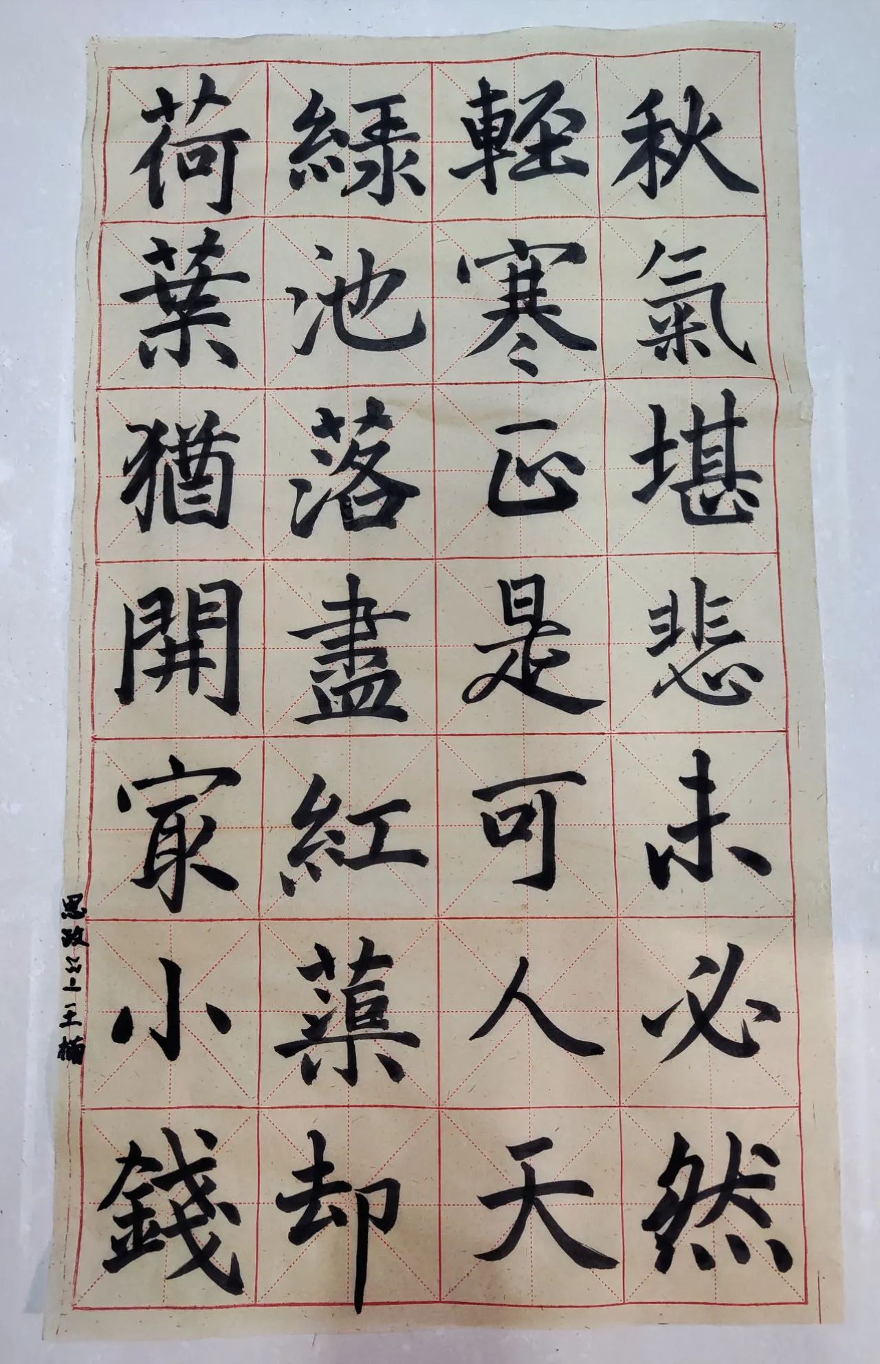 最后评委们对同学们的作品进行点评,薛惠心表示:书法的格式十分重要,在书写时要注意章法和结构,这样才能展现完美的作品。马振伟对同学们的作品进行了赞赏并提出了他对于书法的看法:四字书写对于师范专业的员工是国家对师范生专业员工做出的标准与规定,也是同学们成长的必修课,因此同学们要在书写的时候写好每一笔每一划,练就一手好字。李俭普也对同学们的创作才华表达了认可,她倡导同学们坚持练习,养成良好的书写习惯,在书法练习之途上携手同行,共勉共进。