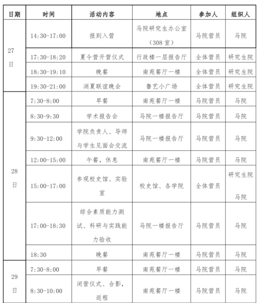 2.未按规定时间报到者视为自动放弃入营资格;营员报到后应全程参加夏令营活动,无故缺席者将被取消营员资格。