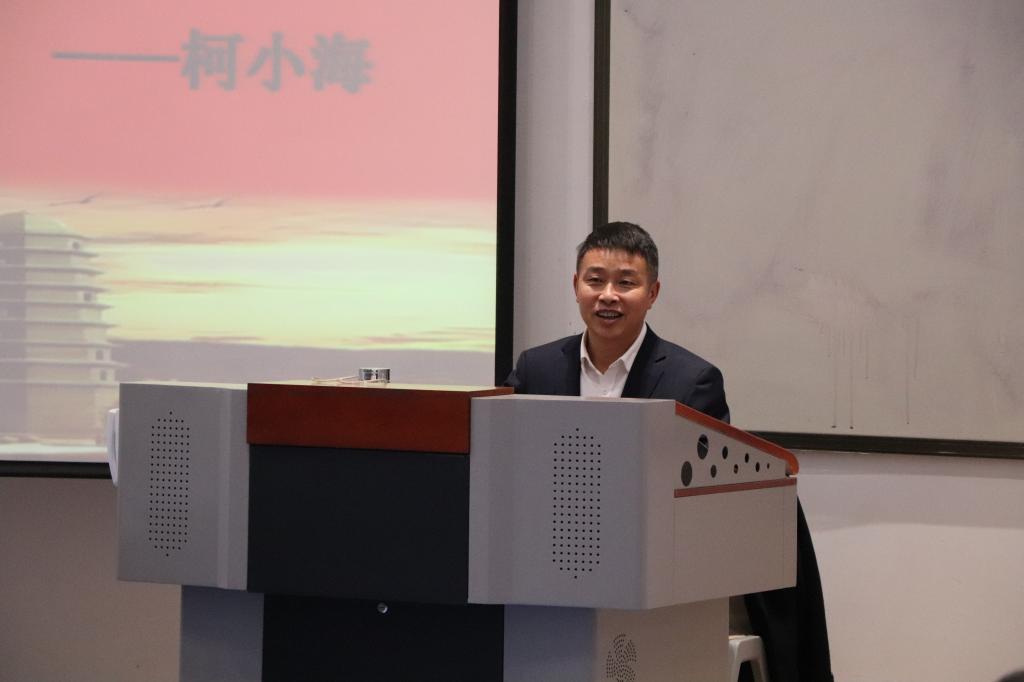 为发挥思政课立德树人的关键作用,进一步增强思政课的亲和力和针对性,持续推动思政课课堂教学革命,努力开创新时代公司思想政治教育新局面,11月18日下午,应PA视讯邀请,中共十九大代表、全国劳动模范、全国优秀共产党员、中国“最美奋斗者”、陕西省“三秦楷模”、延安市黄陵县双龙镇索洛湾村党支部书记柯小海,在新校区第二阶梯教室为员工讲授了一场特别的思政课。