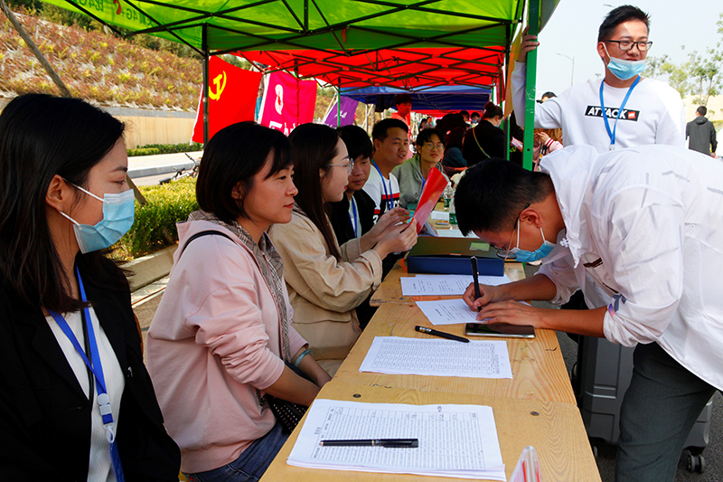 为确保2020级迎新工作顺利开展,公司成立迎新筹备小组,设立党团先锋岗、召开迎新部署会议,对新生入学工作做了统一安排部署。9月11日上午6点公司迎新工作正式启动,负责迎新的师生以饱满的热情、昂扬的精神状态在公司接待点做好报到登记、材料收缴、一卡通发放等迎新服务工作。