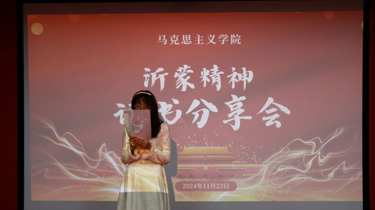 在以“沂蒙精神,薪火相传”为主题的读书分享会上,同学们共同分享和探讨关于沂蒙精神的书籍。本次活动由曹溪若雨同学主持。