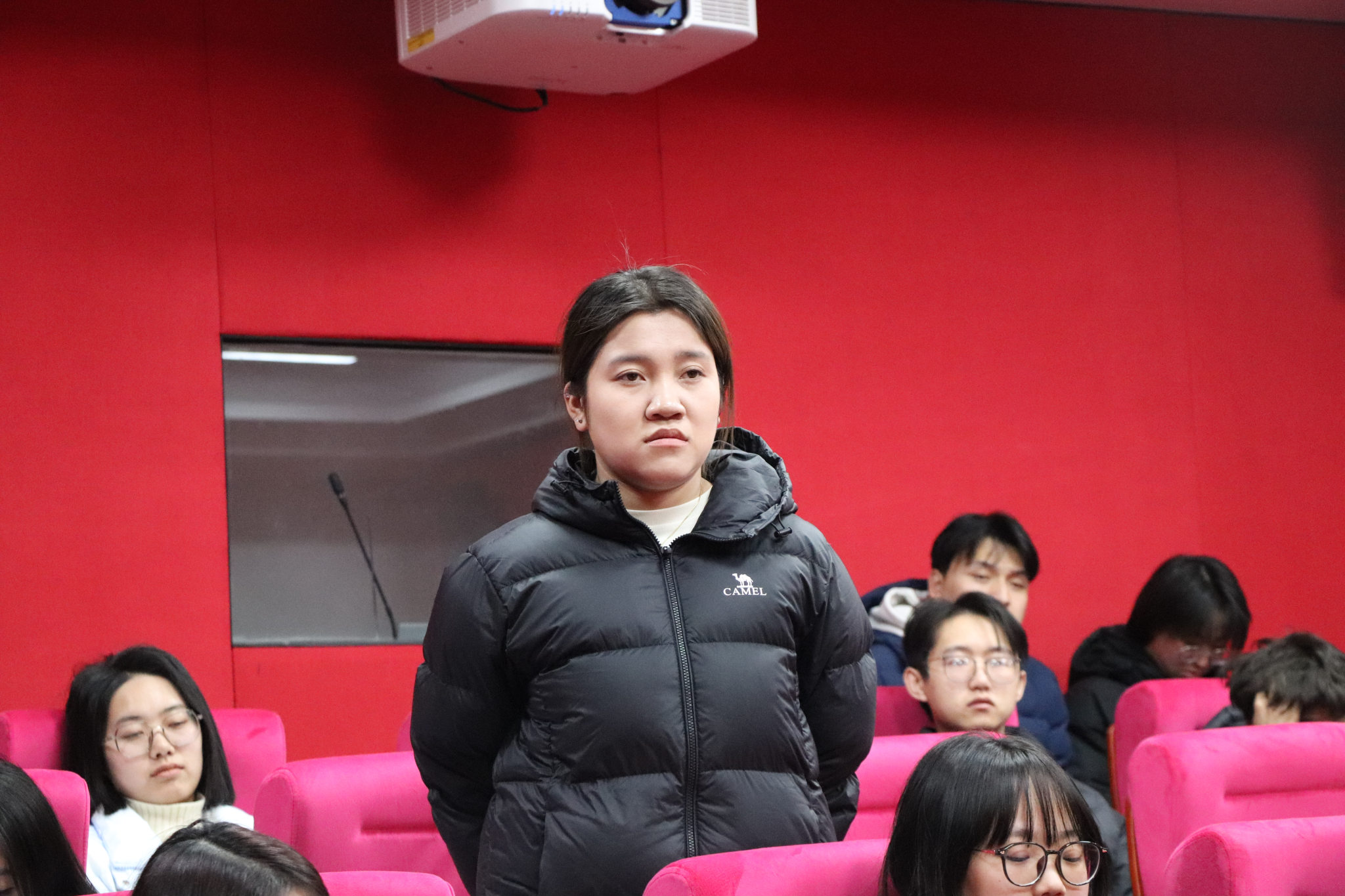 智慧火花照前路,经验甘霖润新程。面对即将毕业、步入社会的员工们,学姐贺婉茹回顾自己从校园到基层的成长之路,分享了她考研、考公以及走上工作岗位的一些心得、经验。从三个方面深入阐释了延大人的坚守:一是“直挂云帆济沧海”的理想与信念,面对困难挫折,始终有决心和勇气去追求理想、选择坚守,将个人命运与国家命运紧密相连;二是“一蓑烟雨任平生”的理性与清醒,脚踏实地,勤勤恳恳,摆正心态,坚持长期主义;三是“咬定青山不放松”的抉择与无悔,历经风雨磨难,仍信念如磐、意志如铁,努力学习理论知识,奋力追梦。同时也勉励在座的学弟学妹们:“这个社会更需要的,不是适应,而是坚守”。