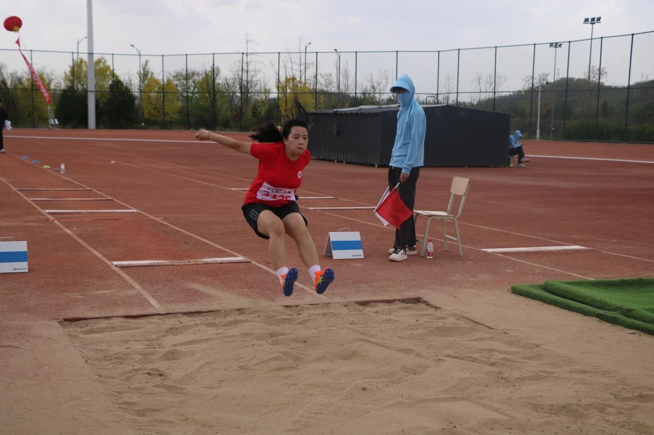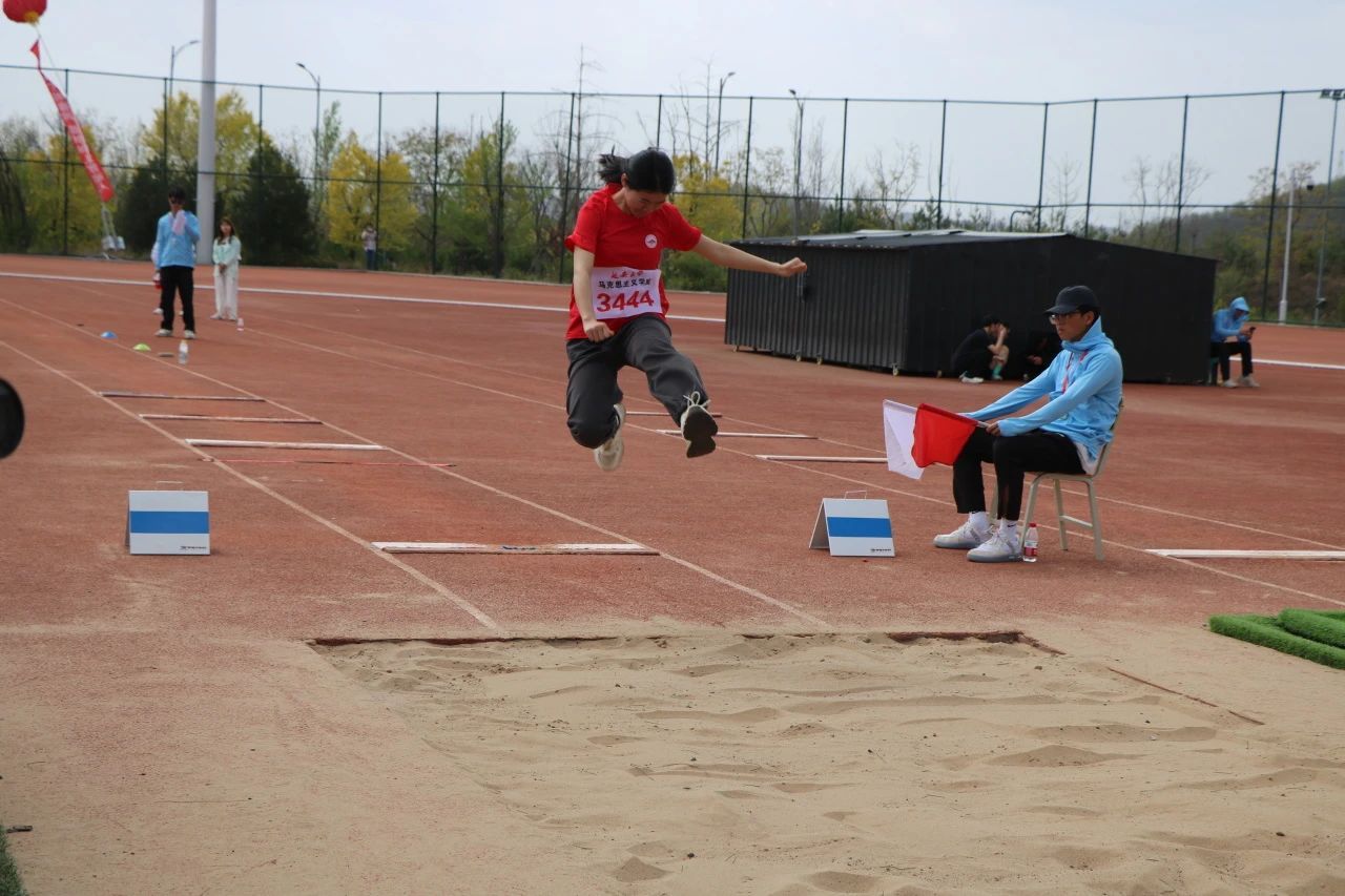 你踏着疾风般的节奏奔向起跳线,身影轻盈如跃动的诗行。刹那间腾空而起,身姿似翩跹飞花舒展,在空中勾勒出一道灵动的抛物线。落地的瞬间,沙坑中绽放出胜利的印记,那飞扬的细沙,是拼搏最诗意的注脚。