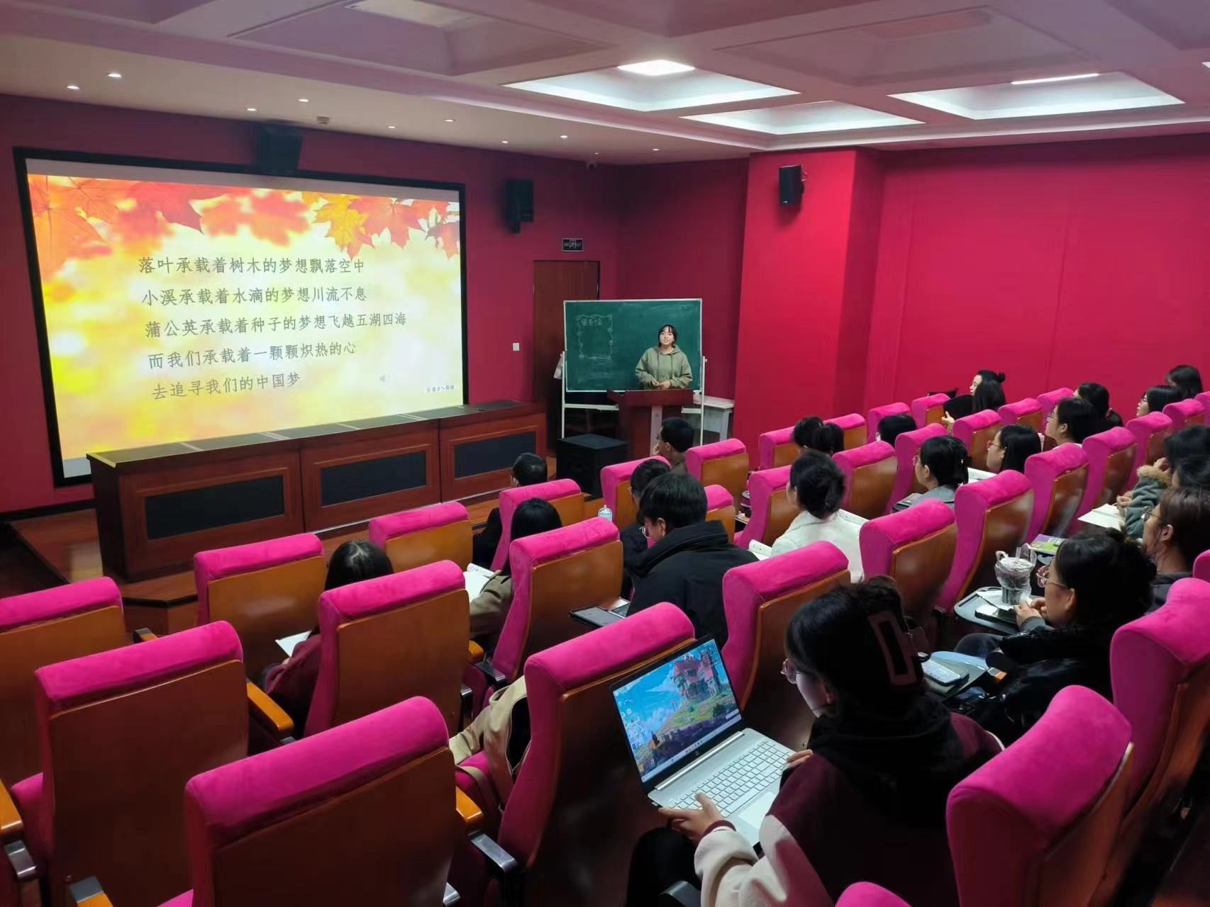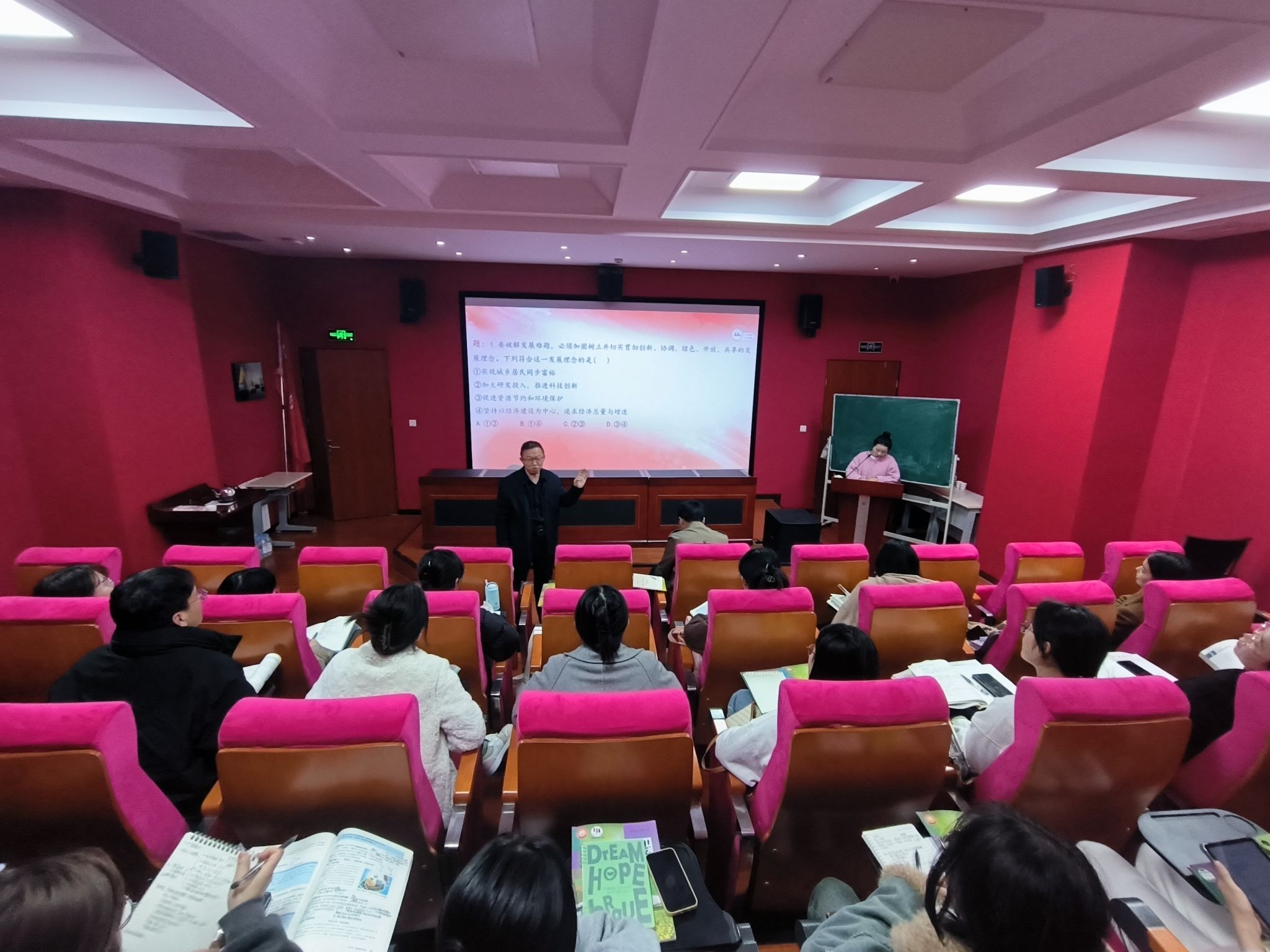 为提升同学们的教学素养,提高教学技能,进一步强化同学们的教学能力。2023年10月26日在PA视讯一楼报告厅开展了学科思政专业教学技能实训的第十三期活动。本次实训活动试讲人为梁钰同学和李娜娜同学,两位同学试讲的内容分别是初中政治《道德与法治》第八课第一框《我们的梦想》和高中思想政治必修二《经济与社会》第三课第一框《坚持新发展理念》。