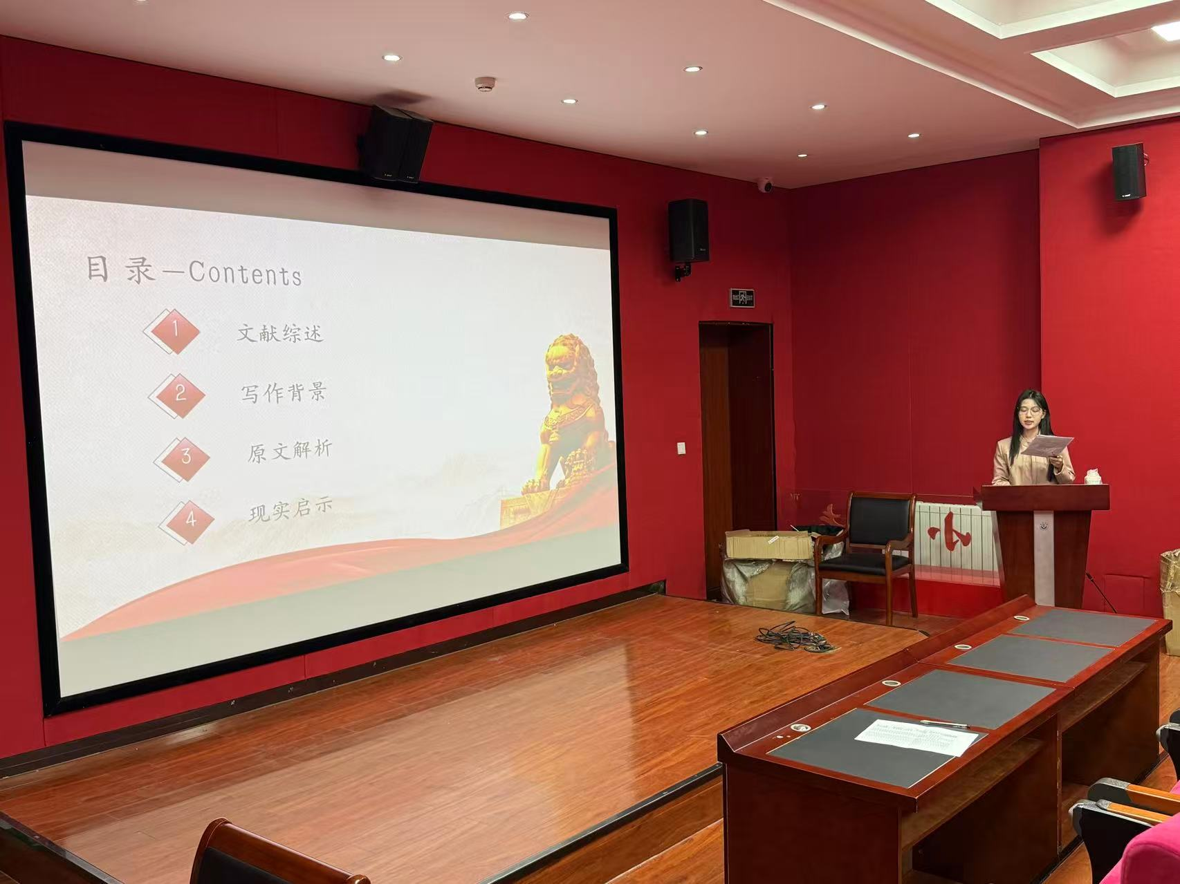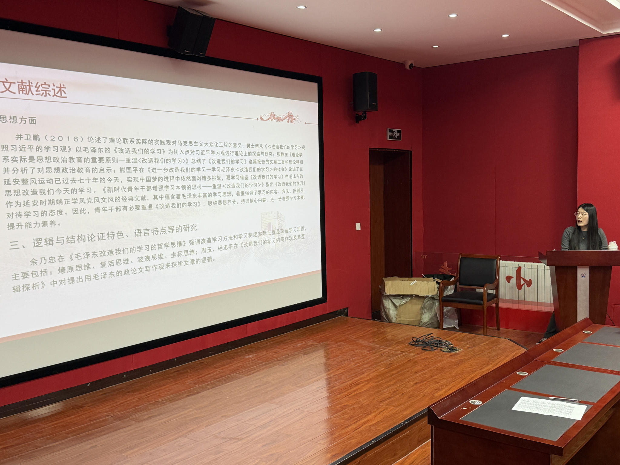 2025年4月28日,“马克思主义经典文献研读” 系列第五十九期学术活动在PA视讯一楼报告厅举行。此次读书会聚焦于毛泽东选集,围绕《改造我们的学习》《反对自由主义》两部经典文献展开深入研讨。2024级思想政治教育方向的硕士研究生李佳、徐春雨两位同学依次登台,就各自研读经典文献的心得与见解作了详细报告分享。